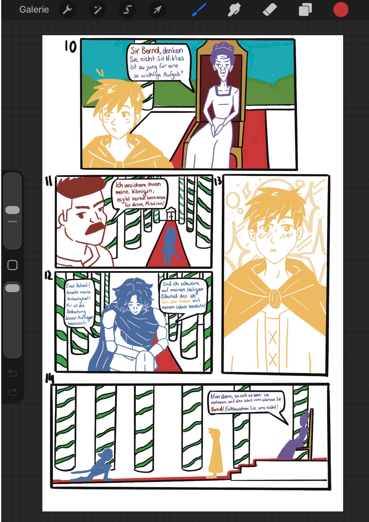 Der Einzige, der diese Reise auf sich nehmen kann und eine Chance hat zurückzukehren ist Eric der Helle. Doch die Königin hat eine Schwäche für den jungen Zauberer und sieht ihn als ihren eigenen Sohn. Weshalb erst nach langem überreden von Bernd, Eric und anderer sie zustimmt ihn auf Reisen zu schicken. Jedoch nur unter der Bedingung das ein von Oberhauptmann Bernd ausgewählter Ritter ihn begleitet und beschützt. Nach langem Überlegen kommt nur einer für Bernd der Bär in frage… Sir Niklas.